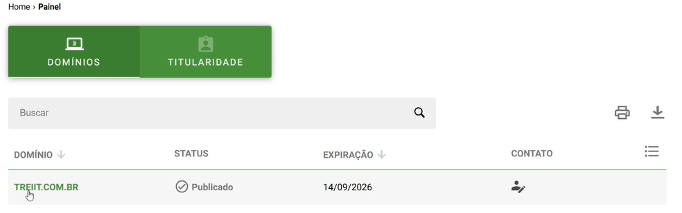 Parabéns! Você concluiu com sucesso o registro do seu endereço oficial na internet. Este é o alicerce sobre o qual toda a sua presença digital será construída. Após a confirmação do pagamento, seu domínio aparecerá no painel como "Publicado", com a data de expiração visível, de acordo com o período que você contratou.