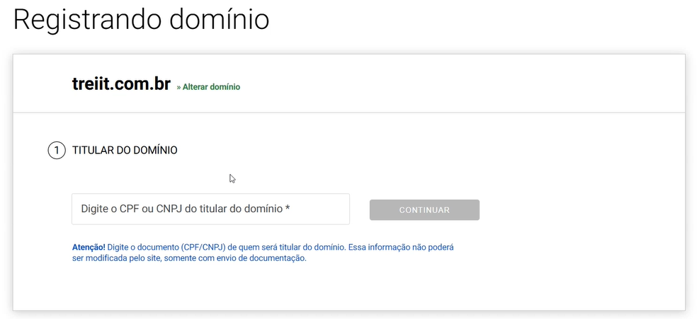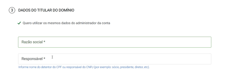 • CPF ou CNPJ: Tenha em mãos o número do Cadastro de Pessoa Física ou Jurídica que será o titular oficial do domínio.